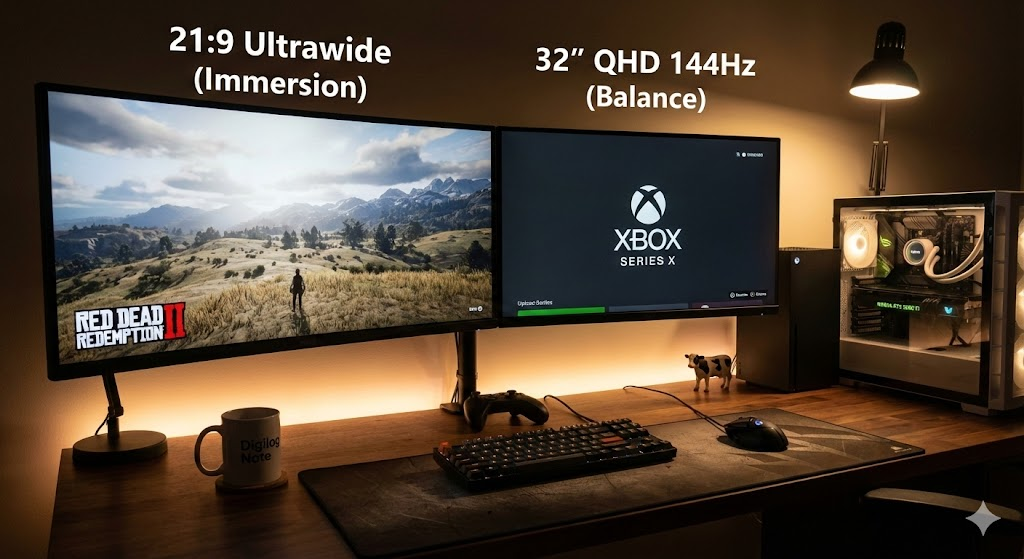 게이밍 듀얼 모니터 구성 가이드: 21:9 울트라와이드 vs 32인치 QHD (RTX 3060 Ti & Xbox용)